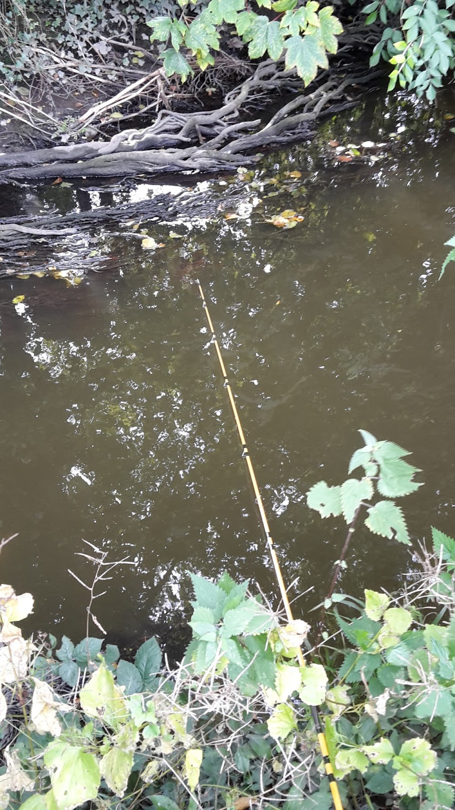 Rain was due so I took the two man bivvy I've used in France. I like to spread out (untidy) and I had Cane, my fishing dog in training, with me so I didn't want to be too close to a wet mutt. I set about wrestling with my green marquee and immediately remembered the little, threaded end piece to the pole that fits in the side pegging point of the tent. Yes, it was important, that's why I had spent so long looking for it a couple of days ago and why I left it with my small change where I would not forget to take it and...... what a plonker! Having bodged a semi-secure fitting with several pegs (none of which I could bury more than 3"), I then recalled my last trip with this bivvy and the clip that came off the tension belt..... that I'd forgotten to replace. Going well so far.